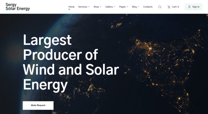 【太阳能光伏企业专属网站模板】精心打造,专为凸显太阳能与可再生能源领域的专业领先地位而设计。模板布局清晰,顶部导航栏巧妙融合了首页、服务详情、经典案例、关于我们、联系方式以及更多下拉菜单等核心板块,确保访客能迅速找到所需信息,尽享便捷浏览体验。
