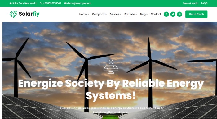 这款网站模板专为新能源解决方案公司设计,提供了丰富的页面选项,涵盖了从首页到博客和联系页面的所有内容。首页有三种不同的设计,每个设计都提供了独特的展示方式,可以根据公司的品牌和目标受众进行选择。