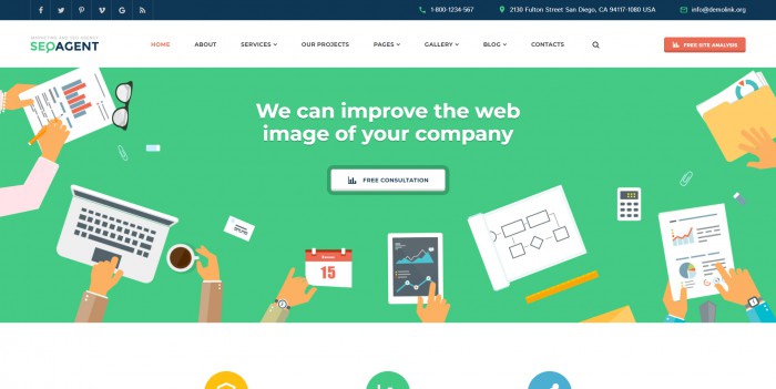 【全能SEO数字营销公司网站模板】专为SEO优化与数字营销领域精心设计,融合现代简约美学,展现企业专业魅力。首页核心区域聚焦呈现提升在线声誉与实时社交媒体管理等核心服务,并配置一键联系方式,加速潜在客户沟通进程。页面中部以详实数据,包括高满意度客户占比、成功案例展示及转化率承诺,强有力佐证公司实力与信誉,深化用户信赖。